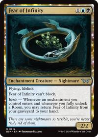 Eerie — Whenever an enchantment you control enters and whenever you fully unclok a Room, you may return Fear of Infinity from your graveyard to your hand.