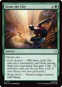• Look Around — Mill three cards. You may put a permanent card from among them into your hand. You gain 3 life. (To mill three cards, put the top three cards of your library into your graveyard.)